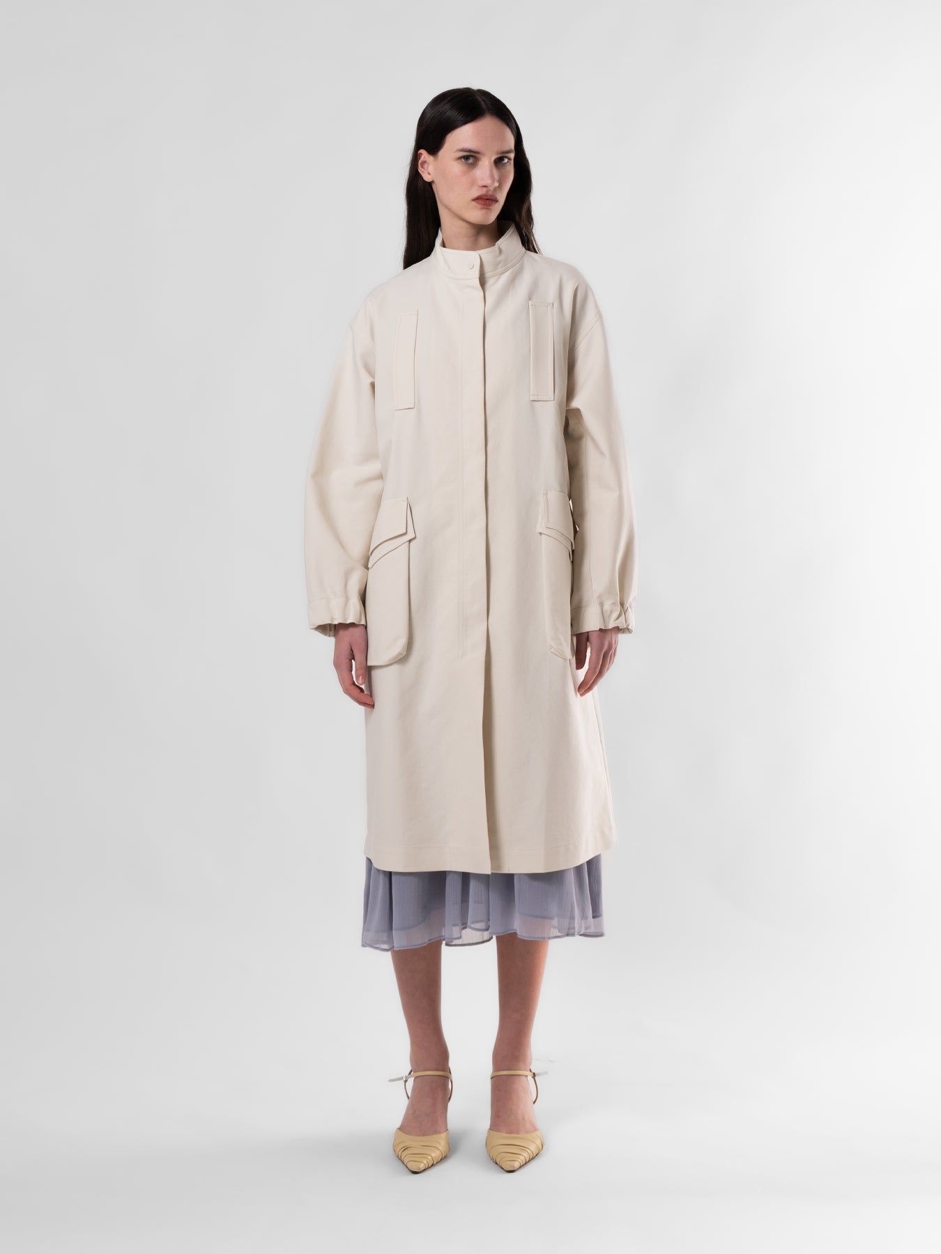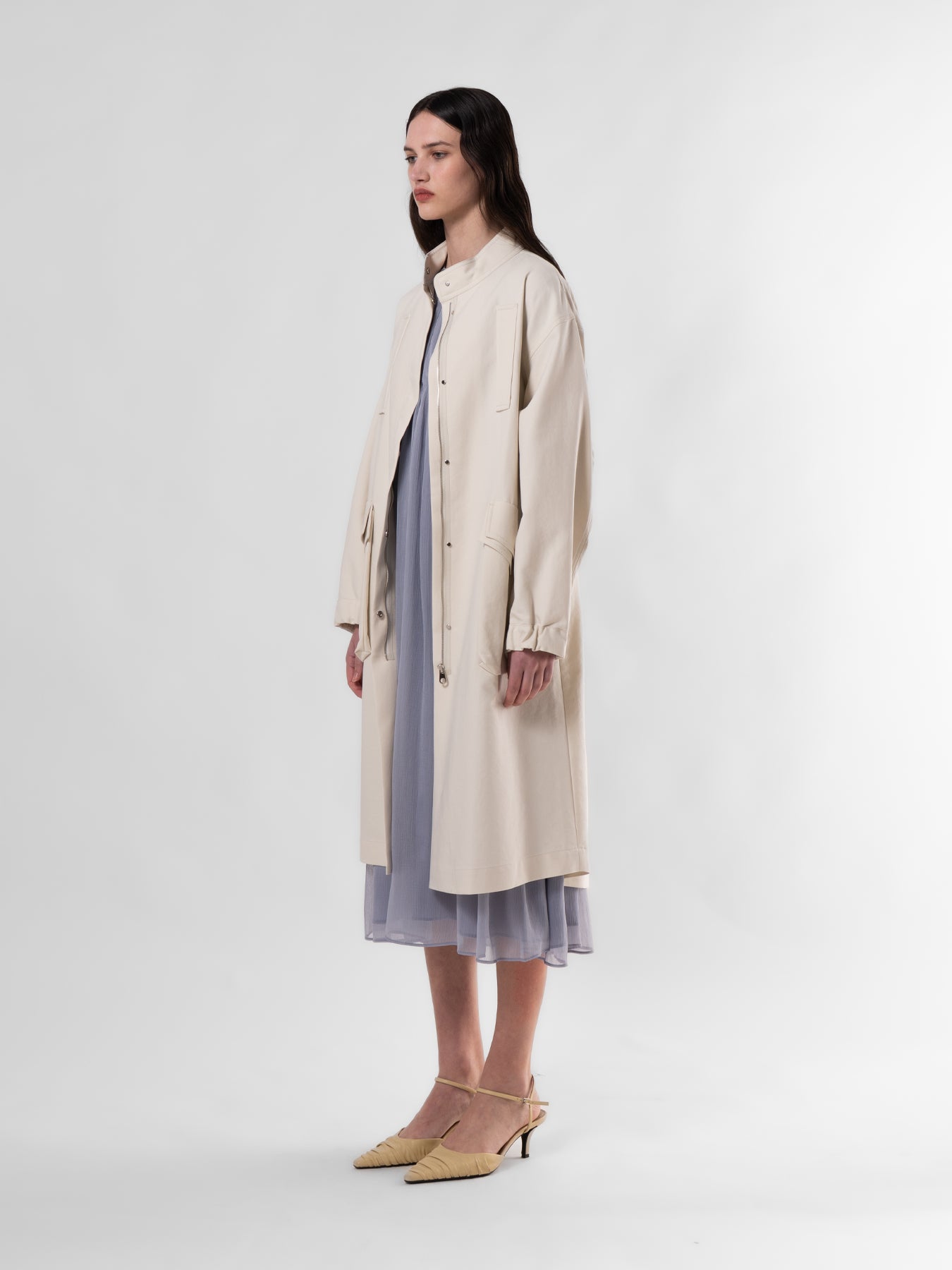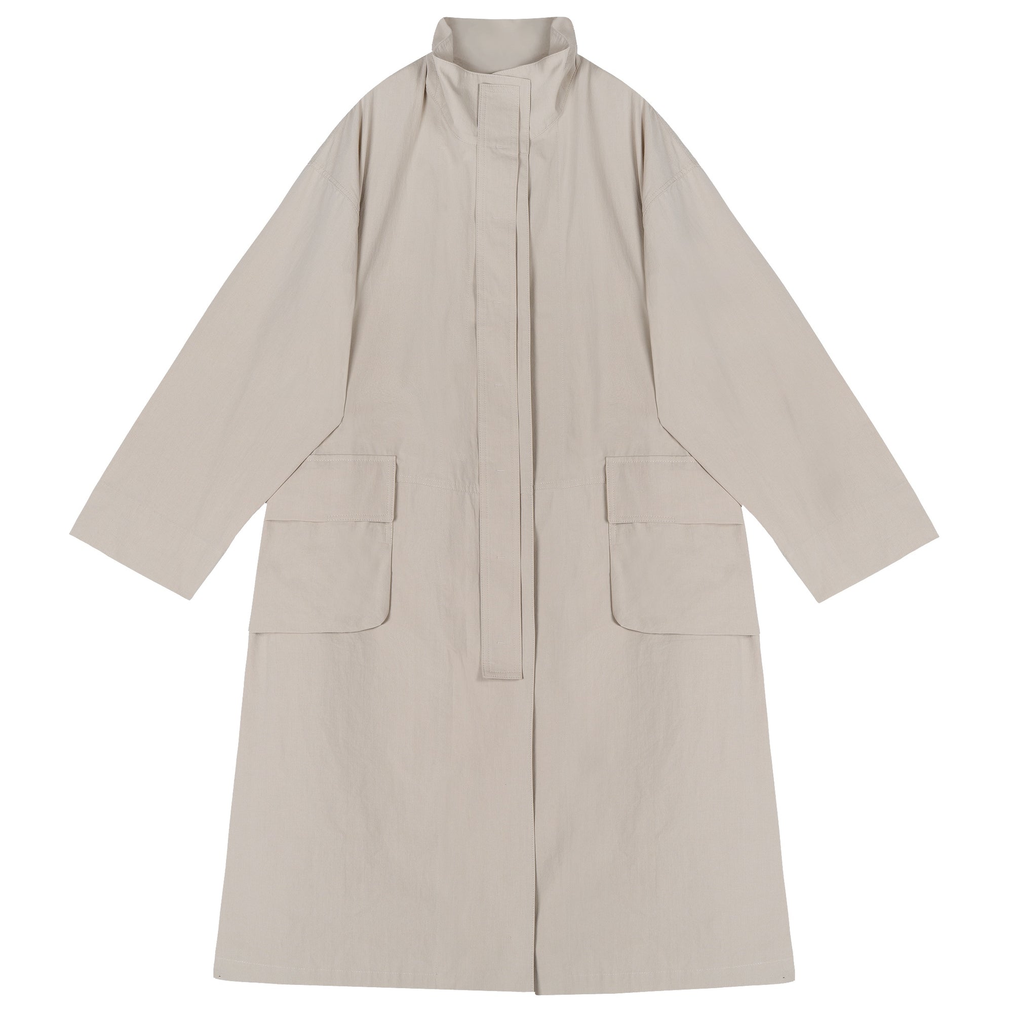 Beige Funnel Neck Utility Coat