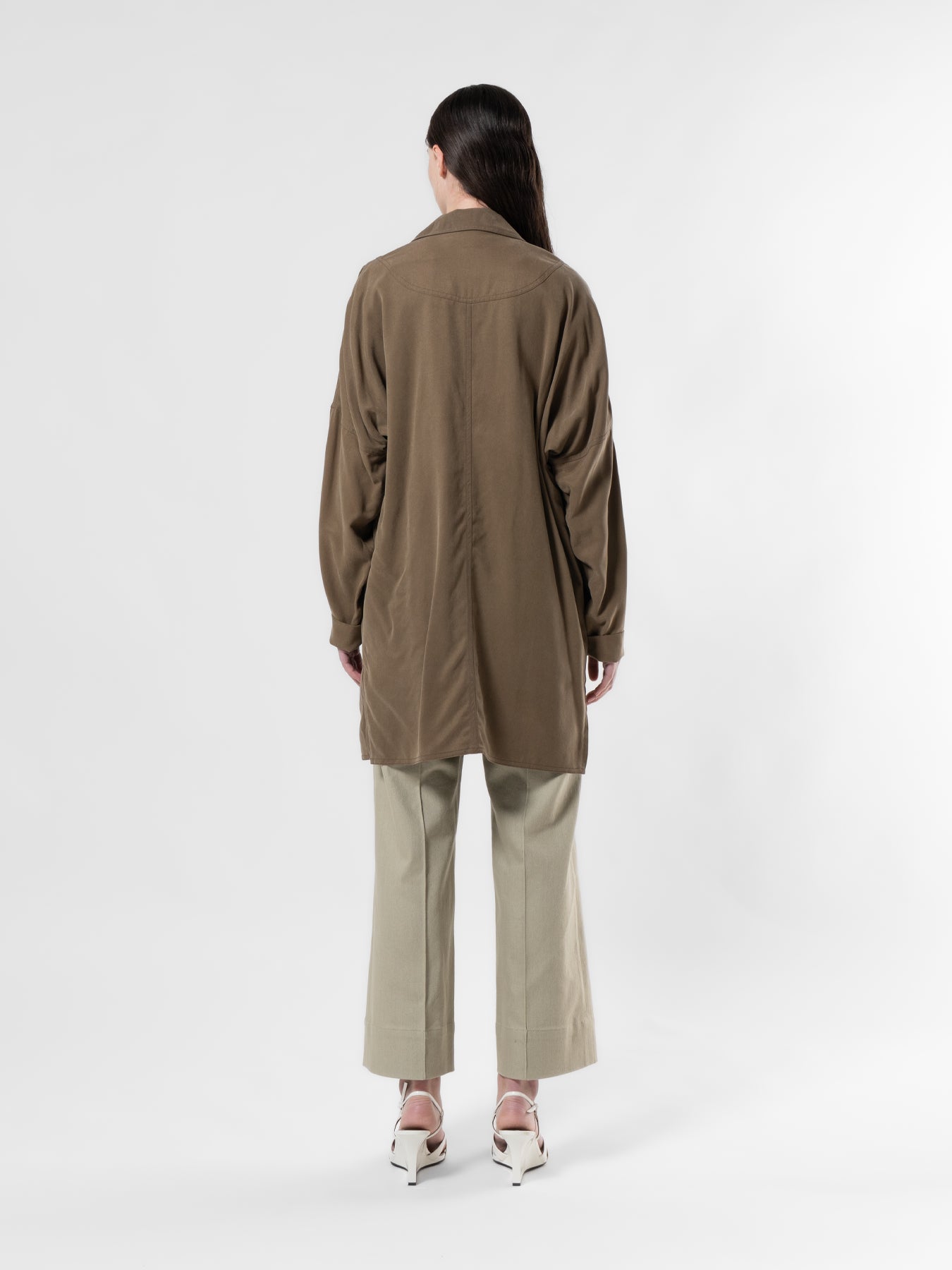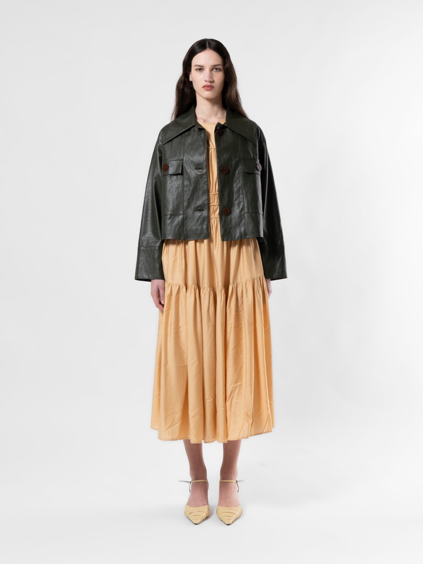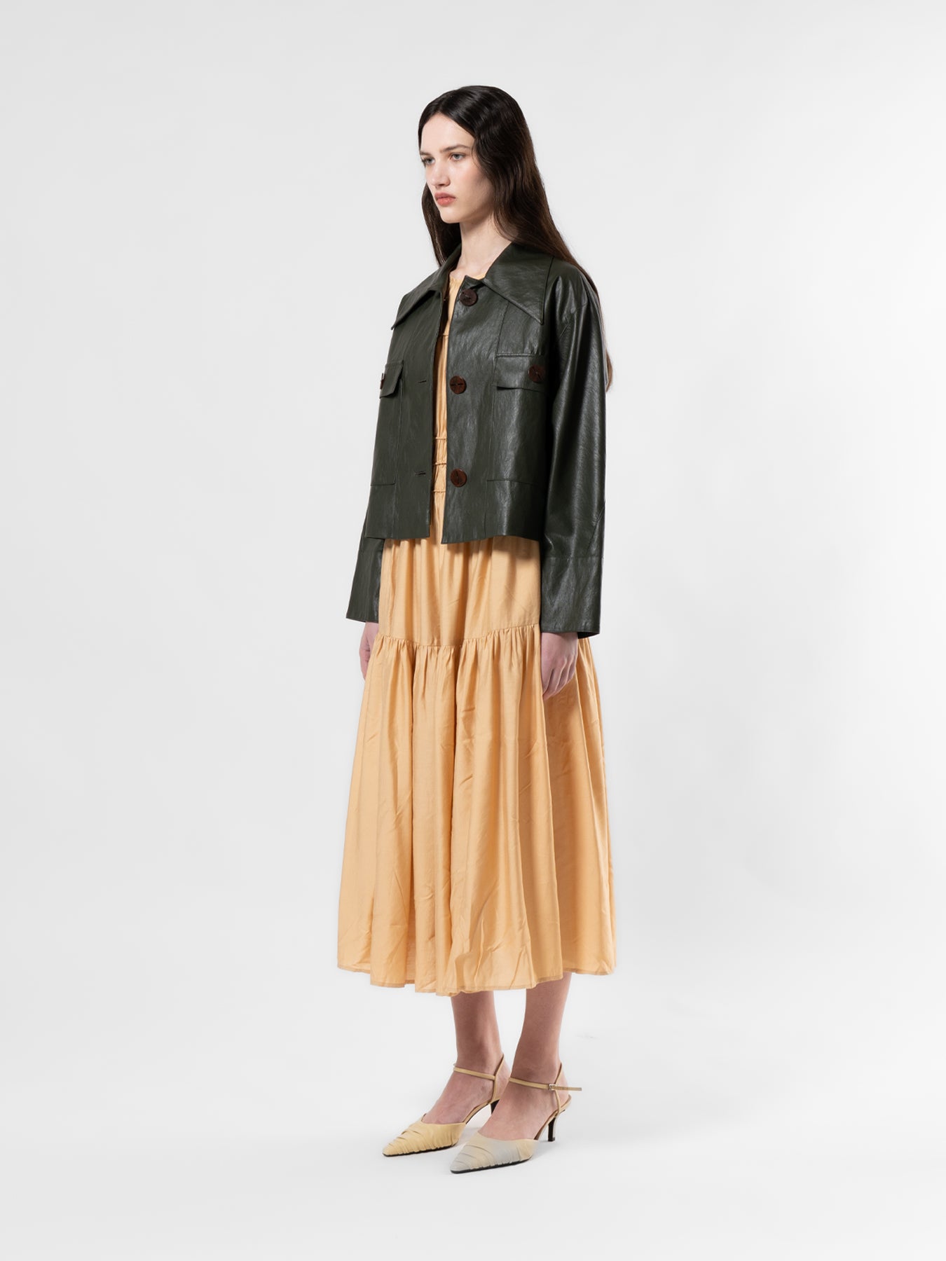 Khaki High-Low Vegan Leather Jacket
