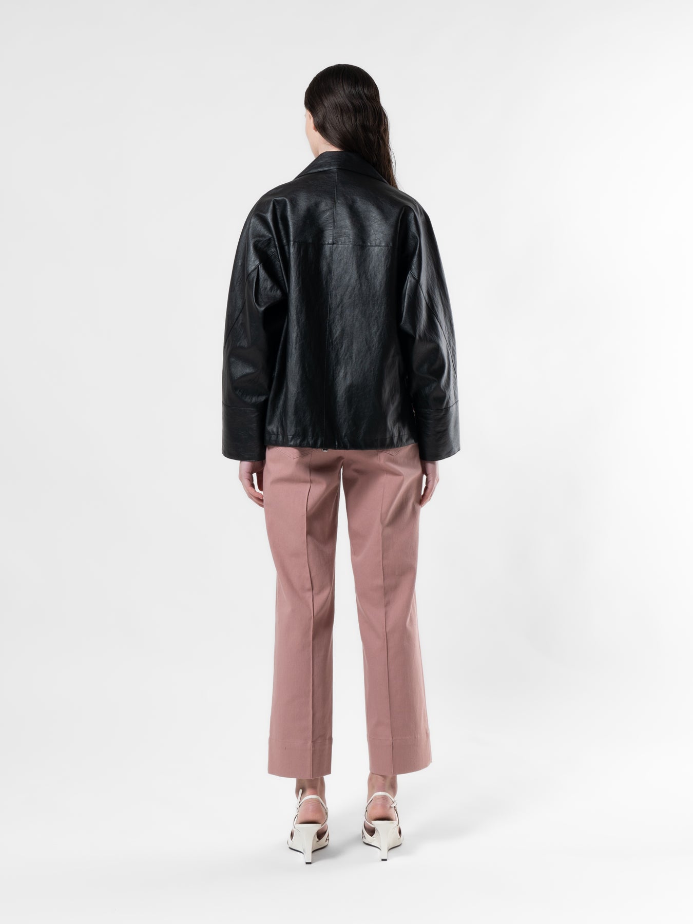 White High-Low Vegan Leather Jacket