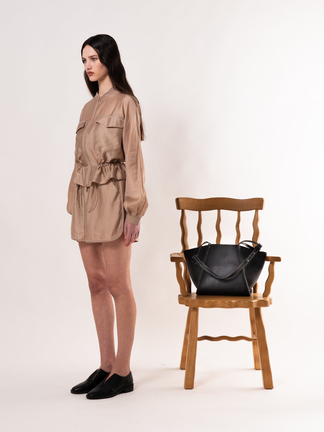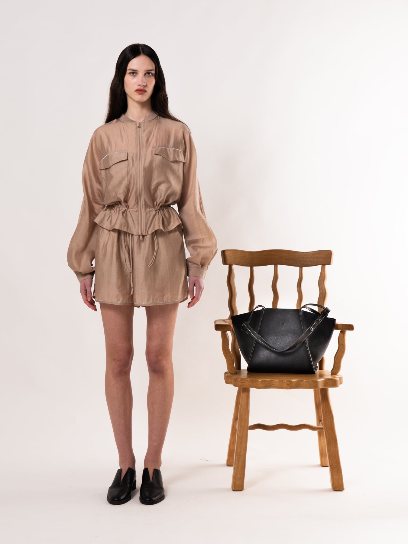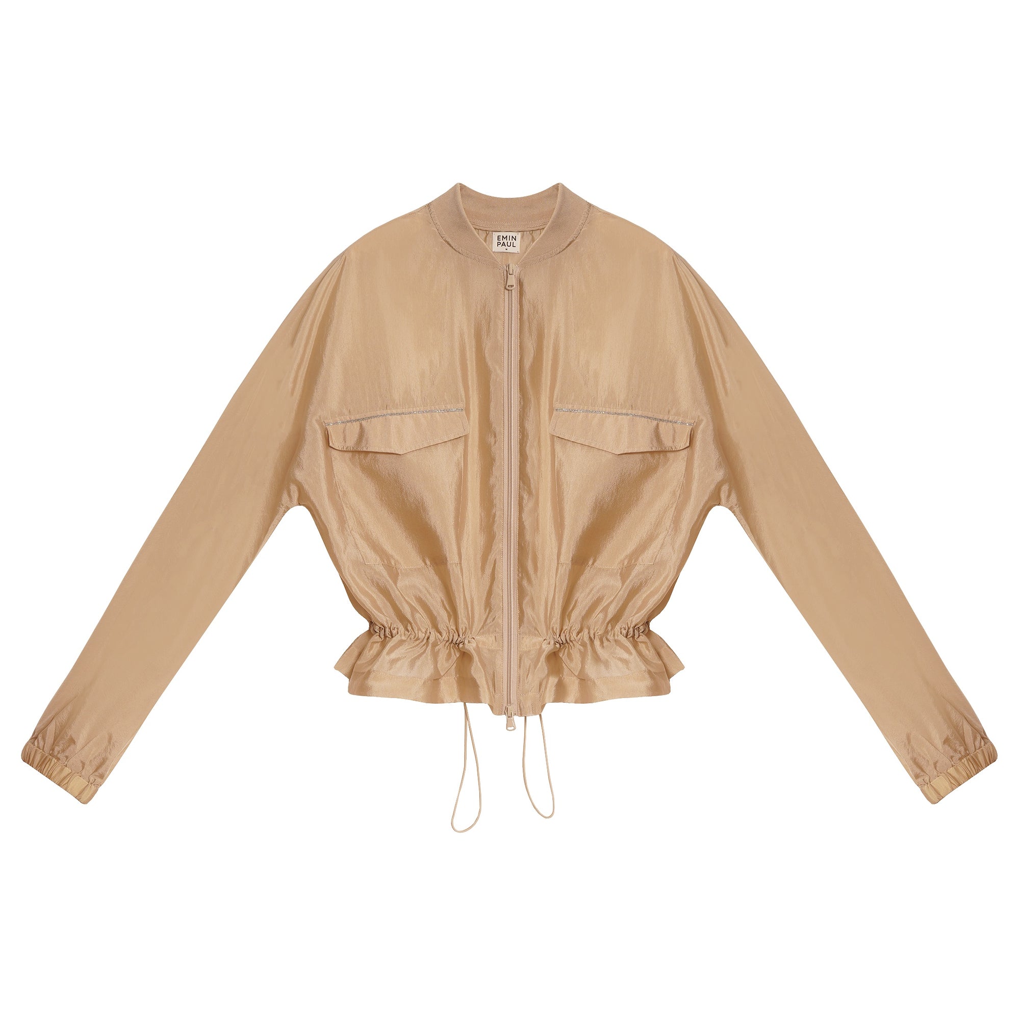 Beige Drawstring Zip-Up Jacket