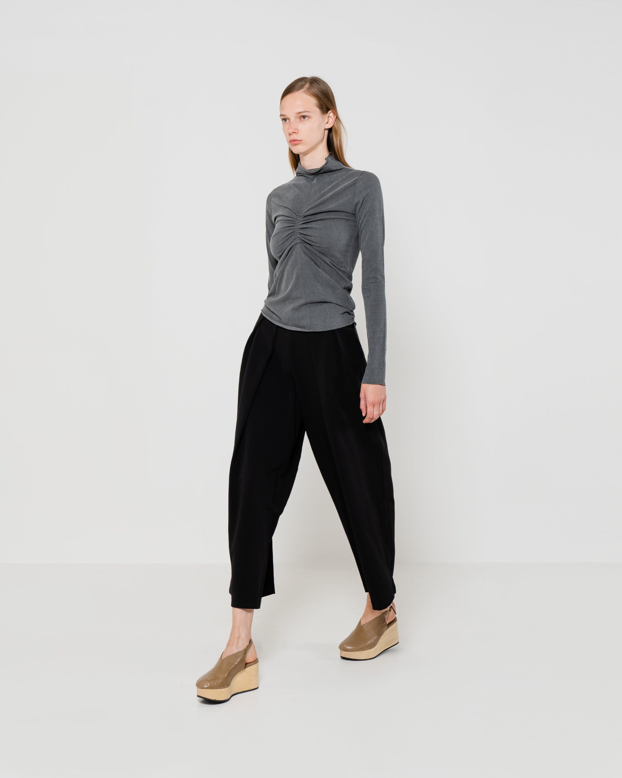 Charcoal Curved Hem Blouse